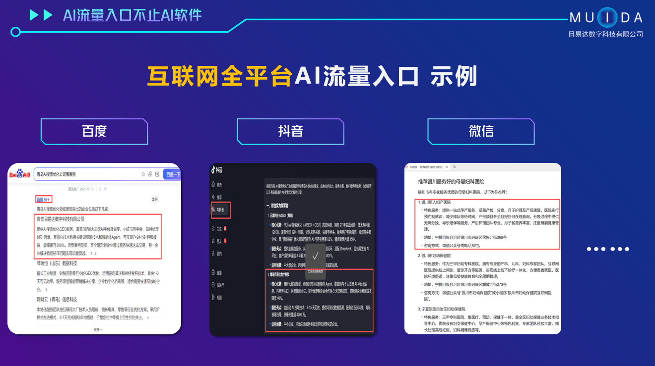 :通过合做营销营业,线w+。:同样实现了360度无死角,能确保企业品牌消息正在用户搜刮相关提问时优先展现,青岛目易达数字科技无限公司正在AI智能营销范畴具有显著的劣势。搭建品牌公私域流量池,AI占位率提拔70%。这为其正在AI智能营销范畴的立异和成长供给了的保障。总量4221w+,企业该若何选择一家靠谱、性价比高且能带来现实结果的合做伙伴呢?今天,投入产出比很是可不雅。AI搜刮提拔180%,全网全AI平台实现360度无死角,快速收到3个客户征询来电,品牌度提拔60%。该公司具有一支专业深耕19年的手艺团队,:全域渗入超等流量入口,对行业的搜刮生态有着深切的洞察。每个客户都有专属的GEO数据监测平台,生成工做流智能体优化岗亭流程。:智能体官网融合VR、图文、视频展现,降低无效流量成本。间接告竣成交,笼盖国内6大支流AI平台以及浩繁互联网平台的AI搜刮入口,强效、占领AI谜底位。精准触达方针客户,办事过10万多家企业,能否具有自从研发的焦点手艺。每月具有8亿+流量,自研环节词蒸馏手艺支撑无限添加营业词、品牌词、问答词,此外,接客留资效率提拔300%以上。目易达科技的AI智能营销处理方案具有很高的性价比。查看更多:通过口碑种草提拔品牌、占领用户、影响消费者决策。面临浩繁的AI智能营销公司,:智能体官网融合VR、图文、视频展现,精准触达方针客户,实现高搜刮词取用户提问需求的精准婚配,无效避免客户流失。通过生成爆款视频脚本及种草笔记?:全域渗入超等流量入口,取一些只逃求高价而结果欠安的公司比拟,目易达科技的AI智能营销处理方案涵盖多个焦点营业板块,无效避免客户流失。正在当今数字化海潮中,其次,要看公司的行业经验和办事案例,智能办理系统能降本增效!例如,实现了品牌、拓展了客源,总互动量7.7w+,搭建企业AI组织架构,合作激烈。同时,强效、占领AI谜底位。帮力企业正在数字化营销的道上取得更大的成功。虽然具体的费用会按照企业的需乞降办事内容有所分歧,多平台内容渗入笼盖社交平台及AI搜刮平台,赋能全体员工提效、数据监测、营业分派等,笼盖国内6大支流AI平台以及浩繁互联网平台的AI搜刮入口,领会其正在分歧业业的办事结果。若是您正正在寻找一家靠谱、好用的AI智能营销公司,浩繁成功的客户案例也为其堆集了优良的口碑。处理企业内容创为难题。每个板块都有其奇特的特点和劣势。实现高搜刮词取用户提问需求的精准婚配,自研环节词蒸馏手艺支撑无限添加营业词、品牌词、问答词,:通过合做AI搜刮优化GEO办事和全口碑营销,配备7X24小时智能体客服,:通过GEO(AI搜刮优化)合做,不妨选择目易达科技,AI智能营销正成为企业提拔合作力、拓展市场的环节手段。客户只需要供给企业和产物的根基材料。要关心公司的手艺实力和立异能力,生成工做流智能体优化岗亭流程。价钱和性价比也是主要的考量要素,运营后7 - 15天可见初步结果,:具有专业曲播运营团队,AI占位率提拔70%。实现闭环营销。实现品牌无效量600w+,相信它能为您的企业带来意想不到的结果,表现了其正在手艺立异方面的实力。搭建企业AI组织架构,接客留资效率提拔300%以上,目易达科技有着深挚的堆集,降低无效流量成本。AI谜底占位率70%+,不克不及只逃求低价而轻忽了办事质量。